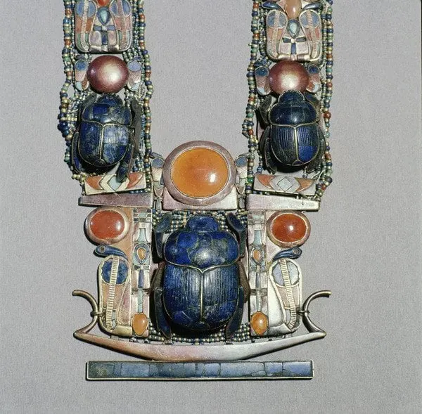 이집트 통치자들은 이런 지리적 아쉬움을 화려한 장신구로 달래야 만 했나 보다! 어린 시절에 요절한 이집트 왕자 투탕카멘(Tutankhamen)의 목걸이 정 중앙에 화려한 유리 장식이 있다. 그의 목걸이에는 약 600킬로미터 떨어진 리비아 사막에서 가져온 모래에서 추출한 유리로 만든 딱정벌레 문양이 박혀있다.