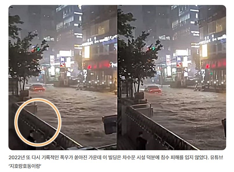 김유민 기자, “강남 물폭탄 속 안전지대… ‘방수 빌딩’ 있었다”, 서울신문, 2022-08-09