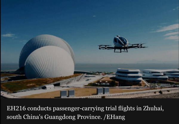 중국에서 빠르면 2025년에 하늘을 나는 택시 서비스가 현실화 될 예정이다. 2023년 10월 현재, 상용화를 위한 시범 서비스를 진행할 준비를 모두 마쳤다. 중국 민간항공청(CAAC, The Civil Aviation Administration of China)는 2023년 10월 14일 세계 최초로 무인항공차량(UAV, Unmanned Aerial Vehicle) 운행 허가를 발급했다. 순수한 전기로 만 작동하는 수직 이착륙 차량(eVTOL, electric vertical take-off and landing aircraft) 운행허가를... Continue Reading →